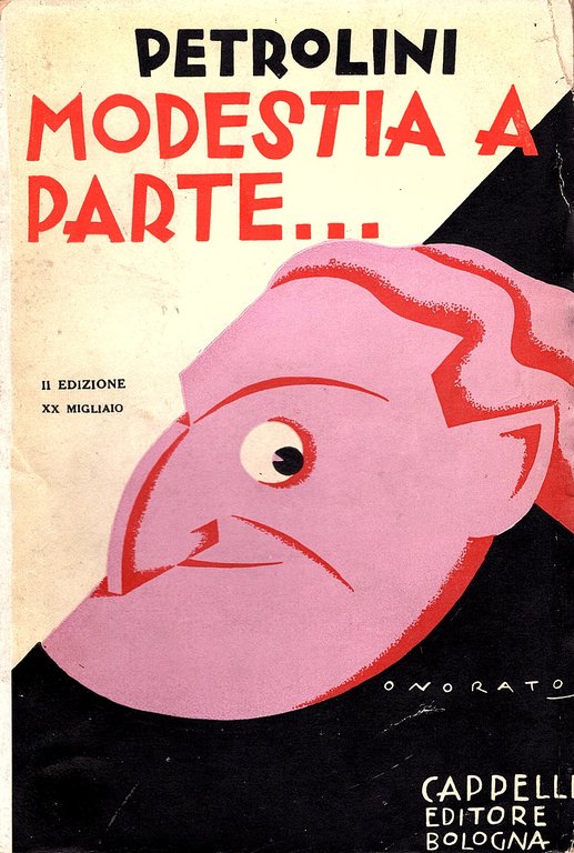 In-8°, pp. 195, (3), brossura editoriale illustrata a colori da Onorato con caricatura di petrolini. Tavv. fotografiche f.t. e disegni di Onorato in b.n. n.t. e f.t. Buon esemplare Seconda edizione (20° migliaio), contemporanea alla prima, di queste rievocazioni autobiografiche petroliniane stese con sapida vena umoristica. 'E' stato probabilmente il maggior comico italiano. I tipi che ha inventato e incarnato: Gastone, Giggi er bullo, Mustafà e molti altri erano non solo di irresistibile comicità, ma esprimevano, dietro il sarcasmo spesso feroce della rappresentazione, una desolata coscienza delle miserie umane. Così questo attore d'avanspettacolo, che dovè tribolare lunghissimi anni in compagnie di infimo ordine, riuscì a farsi riconoscere e apprezzare dall'intellighenzia' come un'ultima maschera tragicomica di Roma, scanzonata e beffarda. Ma dietro il suo cinismo si sentiva un'umanità disperata e una tremante pietà. I libri che scrisse sono da ricordare in una storia del costume italiano nel periodo compreso fra le due guerre mondiali' (Vallecchi, 1974, p. 1029).