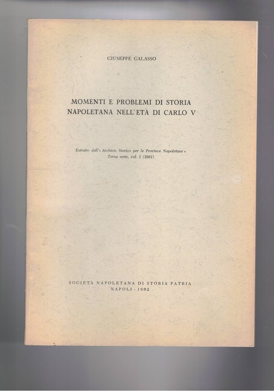 Momenti e problemi di storia napoletana nell'età di Carlo V. Estratto dall'archivio storico delle Province Napoletane.