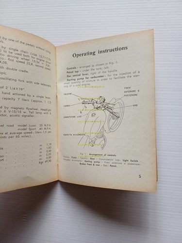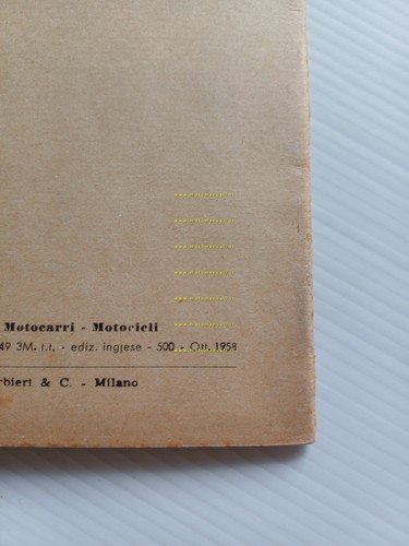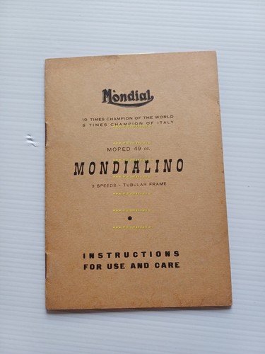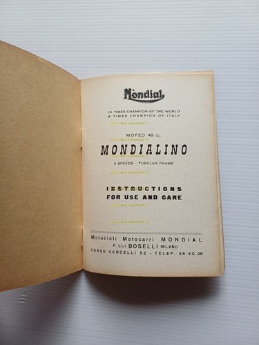 Mondial Mondialino 50 3 V 1958 manuale uso manutenzione originale testo INGLESE
