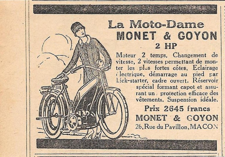 Monet et Goyon. La moto-dame 2 HP. Pubblicita 1926