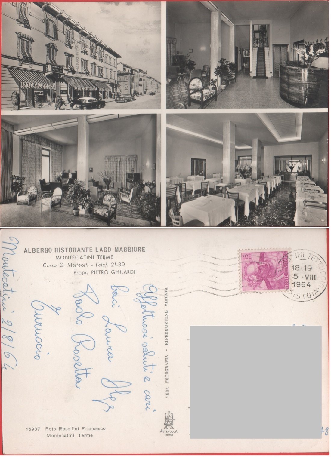 Montecatini Terme. Albergo Ristorante Lago Maggiore. Viaggiata 1964