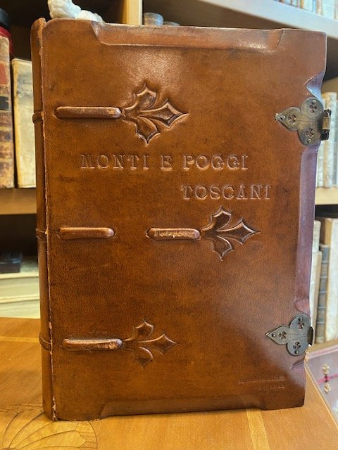 Bella e solida legatura coeva in piena pelle di maestri fiorentini con nervi ai dorsi e ai pitti, gigli di Firenze in impressione e ganci di chiusura. Con 68 tavole fuori testo in due tonalità di colore e picc. illustrazioni in testa agli articoli. Con scritti di G. Dainelli, C. De Stefani, G. Stefanini, S. Sommer, M. Puccioni, A. Mochi, A. Gori, A. Mori, N. Tarchiani, R. Gatteschi, N. Puccioni, N. Fatichi, O. De Falkner, G. Prunaj. Interessante sguardo sulla Maremma Toscana dalla pastorizia, alla caccia, alla montagna e agli usi contadini. Sc. O.