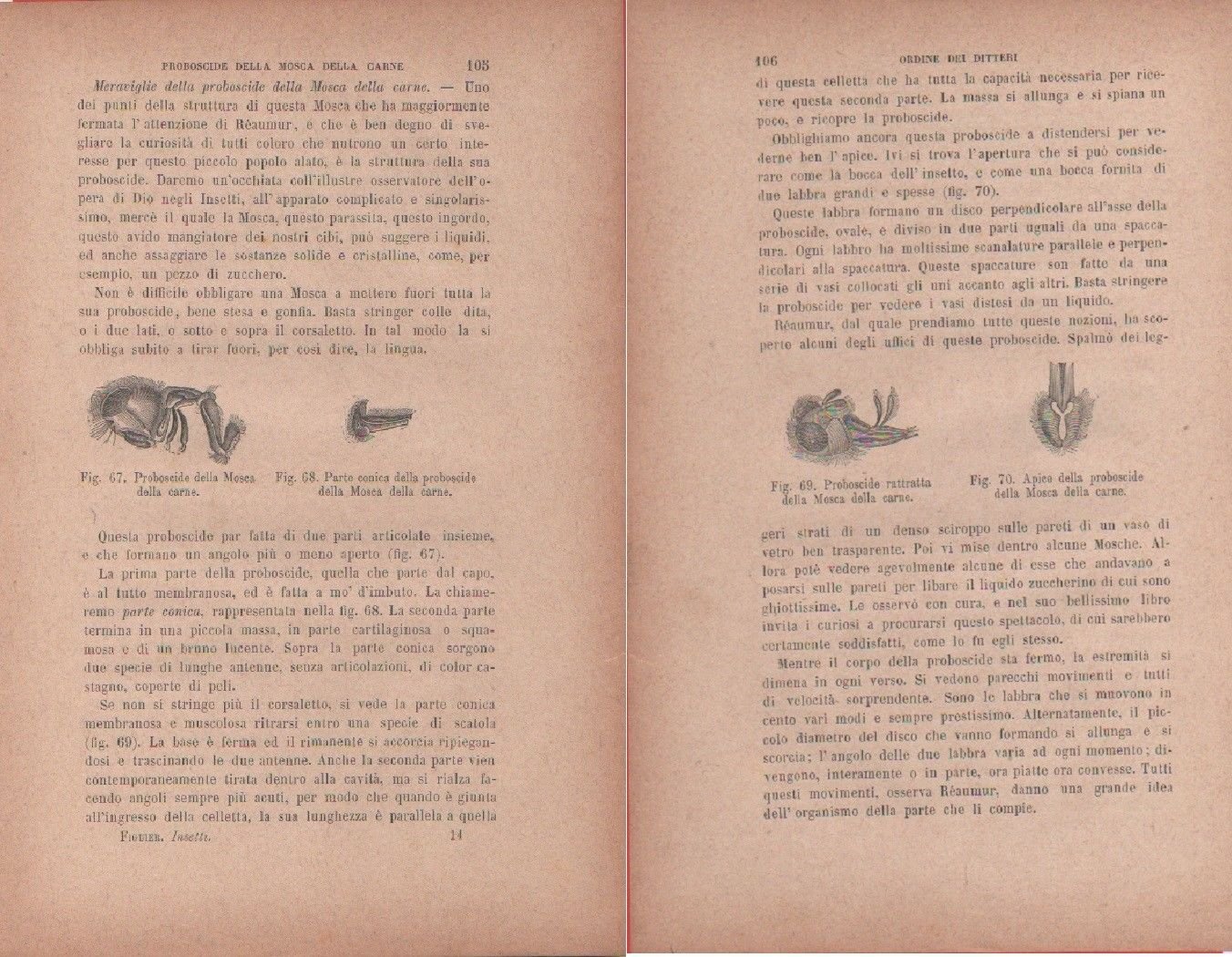 pagina fronte retro; stampa tratta da Gl'insetti di Luigi Figuer, V ed. italiana, F.lli Treves 1893 formato pagina 15x23 cm ca. in condizioni molto buone, come da foto. L'immagine è peggiorativa delle reali condizioni di ingiallimento P424
