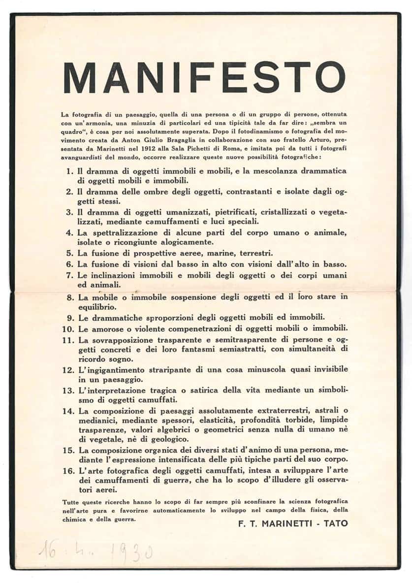 - Bertieri, Boccardi, Arturo Bragaglia, Demaninis, Farfa, Gramagli, A, Fosco Maraini, Parisio, Pirrone, Pocarini, Tato, Wanda Wulz)