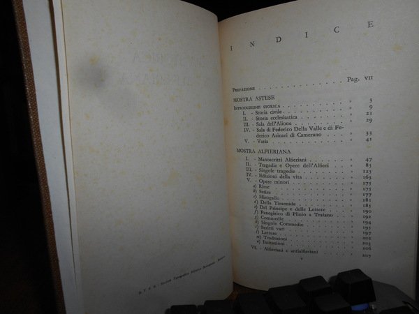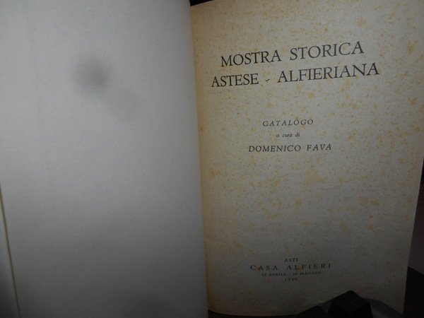 Domenico Fava. Asti, Casa Alfieri, 1949. MOSTRA STORICA ASTESE - ALFIERIANA. In-16° grande, tela con titolo in oro entro tassello al dorso. viii, 219 pp. con alcune tavole f.t. Ottimo esemplare con lieve ingiallimento al frontespizio. Uff. A - II - 3 - 2