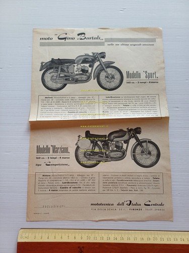 Moto Bartali 160 Sport - 160 Marziano Competizione 1955 depliant originale