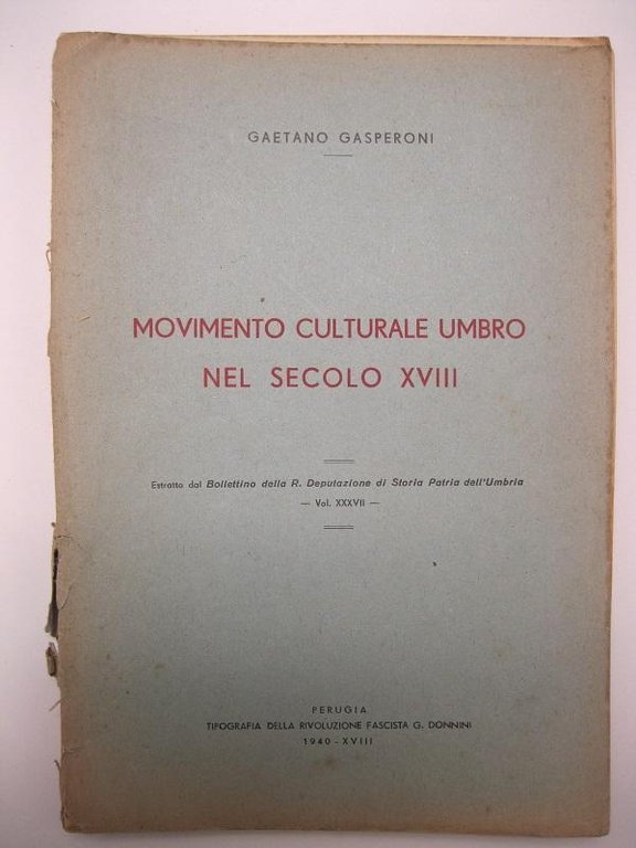 Movimento culturale umbro nel secolo XVIII Estratto dal Bollettino della R. Deputazione di Storia Patria dell'Umbria. Vol.XXXVII