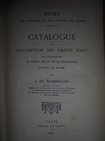 Du Sommérard, E. Paris, Hotel de Cluny, 1881. Musée des thermes et de l' Hotel de Cluny. Catalogue et description des objets d' art de l' Antiquité, du Moyen Age et de Renaissance exposés au Musée. In-8°, tela edit. xxxiv, 692 pp. Ben conservato. Neg. mob. 4