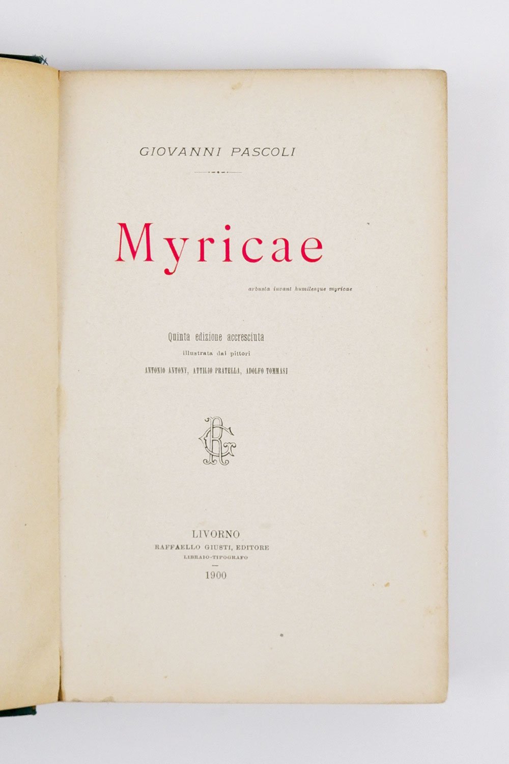Myricae. Quinta edizione accresciuta illustrata dai pittori Antonio Antony, Attilio Pratella, Adolfo Tommasi