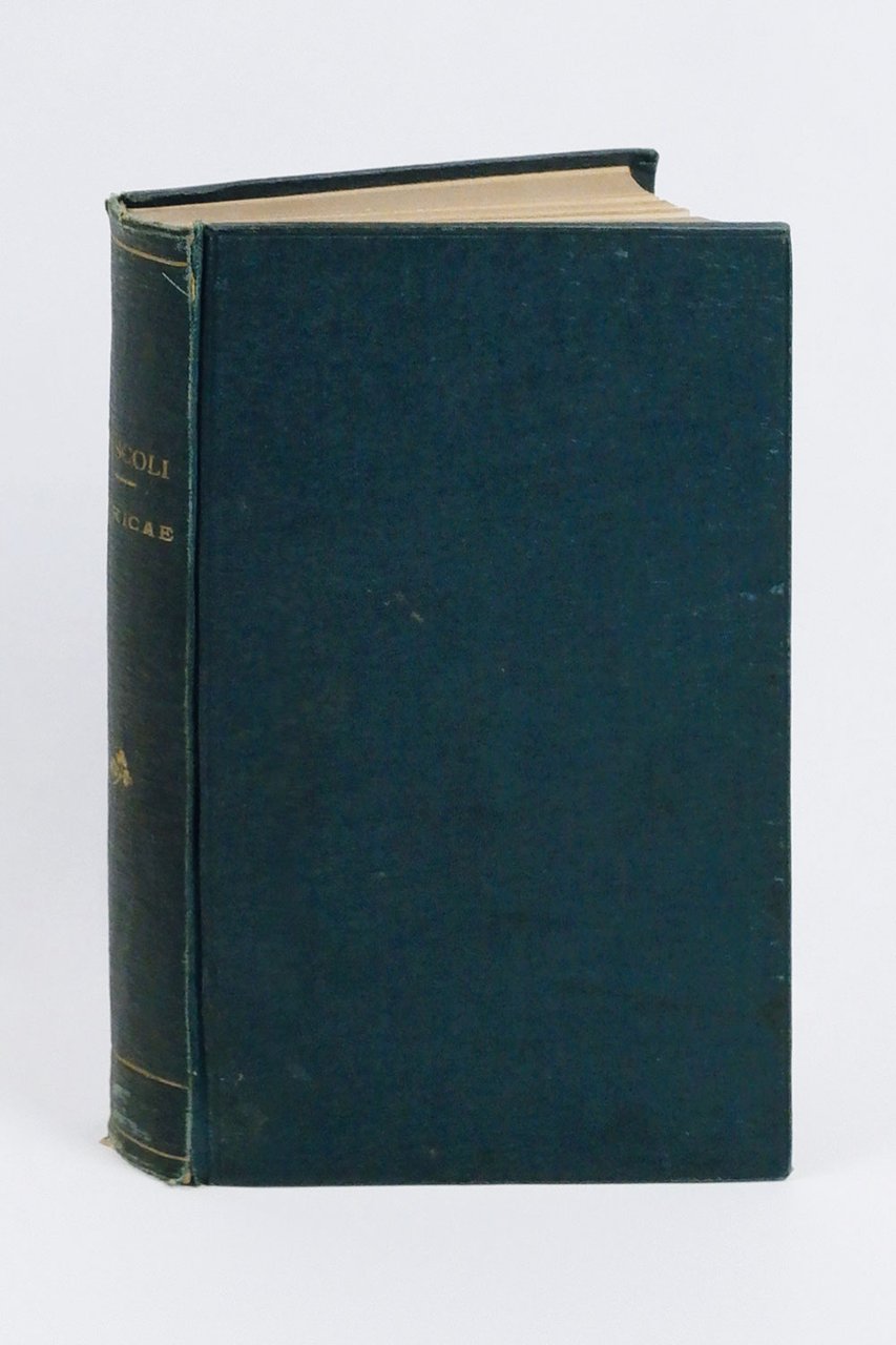 - legatura dell’epoca in piena tela verde petrolio a dorso liscio con profili, autore-tiolo e fregio in oro; fogli di guardia in carta a motivo floreale,
