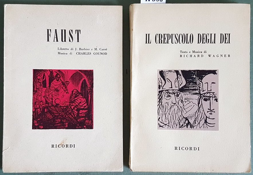 Edizione: desvcrizione dei 2 vol. 1) versione ritmica italiana di a. zanardini per il vol. il crepusolo degli dei (prologo e tre atti l'anello di nibelungon- terza giornata) - 2) versione lirica italiana di a. de lauziere per il vol. faust (dramma lirico in cinque atti)