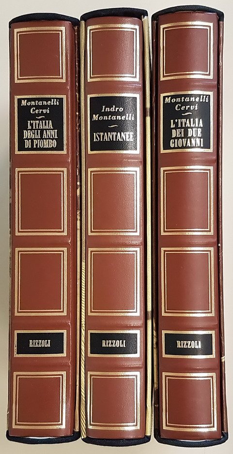 Edizione: descrizione dei volumi: 1) istantanee - figure e figuri della prima repubblica (indro montanelli), pp. 362, (2), milano 1994 - 2) l'italia degli anni di piombo (indro montanelli e mario cervi), pp. 344, (6) con alcuni ritratti in nero nel testo (1991) - 3) l'italia dei due giovanni ( (indro montanelli e mario cervi), pp. 279, (25) con alcuni ritratti in nero nel testo (1989).