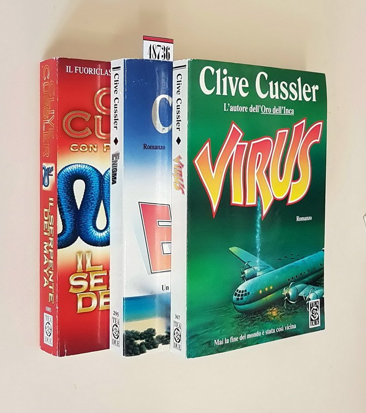 Edizione: descrizione dei volumi: 1) enigma (n. 295), traduzione di roberta rambelli, pp. 265, (1) - 5. edizione (1997) - 2) virus (n. 367), traduzione di roberta rambelli, pp. 396, (4) - 8. ristampa (1998) - 3) il serpente dei maya (n. 1085), traduzione di lidia perria, pp. 478, (2) - 5. edizione: marzo 2006.