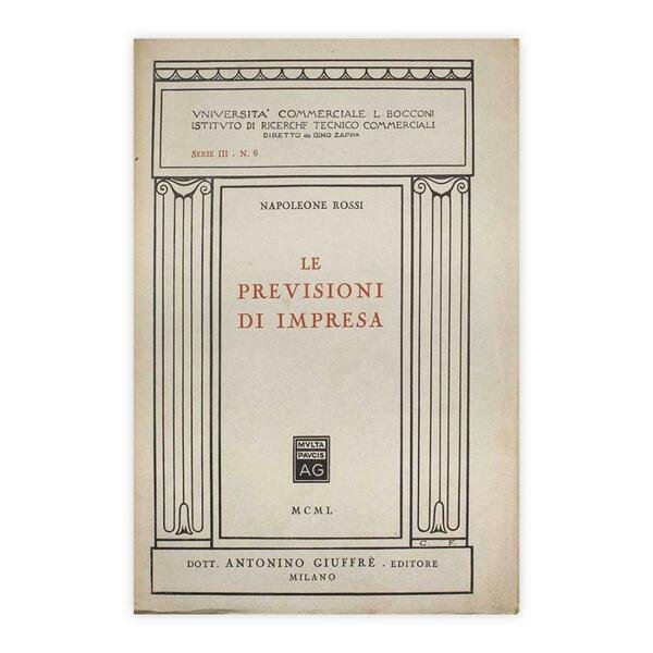 Autore: Napoleone RossiTitolo: Le previsione di impresaEdizione: Dott. Antonino Giuffrè - editore - Milano, 1950Dimensioni: 25,5x18 cmPagine: 308Copertina: BrossuraCondizioni: Ottime