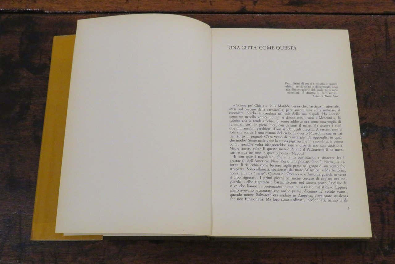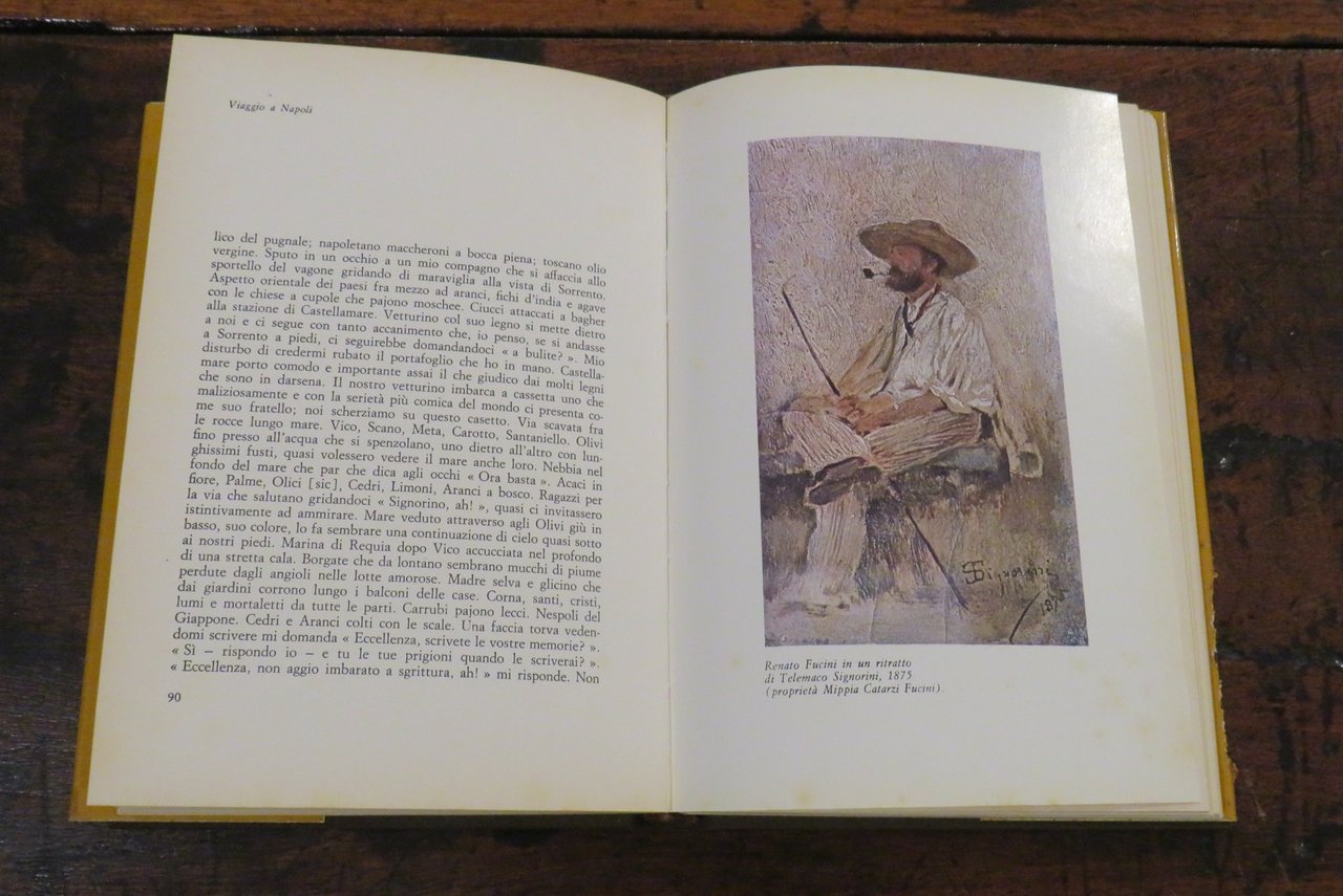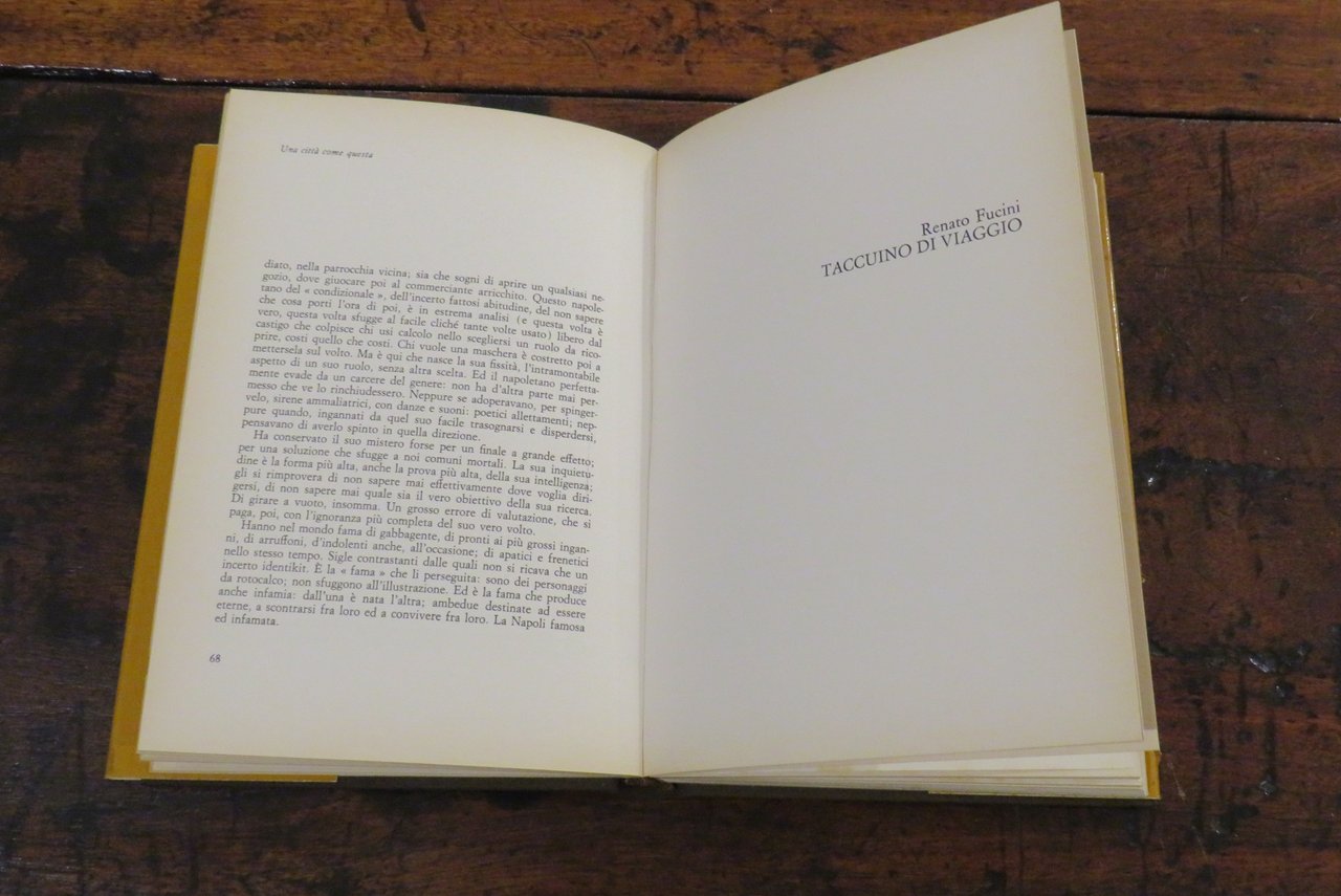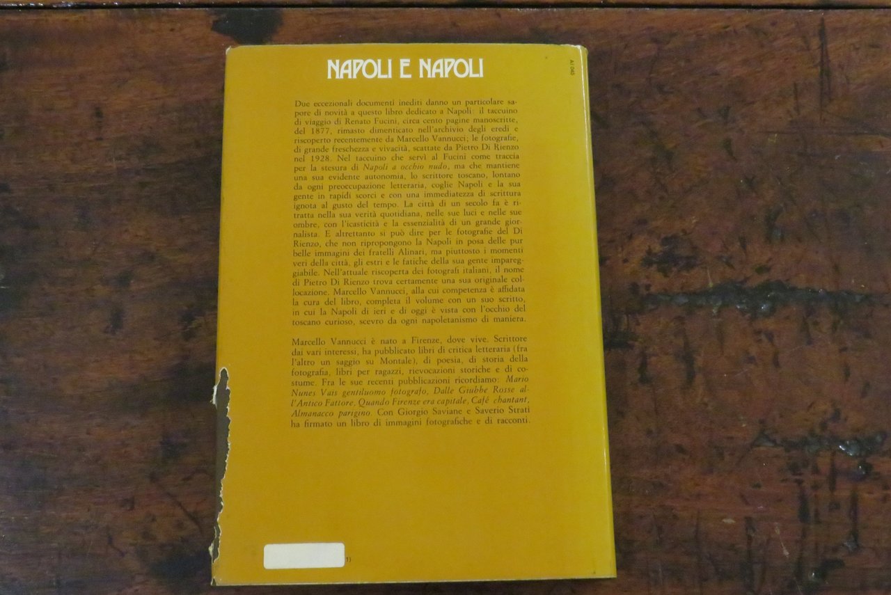 Firenze, Vallecchi, 1978. In -8 (mm. 170x240,7), pp. 138, con 60 splendide fotografie d’epoca in bianco e nero fuori testo, di Pietro Di Rienzo. Le fotografie, scattate nel 1928, sono corredate da didascalie dell’autore. Legatura editoriale muta tutta tela, con autore, titolo ed editore impressi in bianco al dorso. Con sovraccoperta illustrata a colori al piatto anteriore. Con un taccuino inedito di Renato Fucini (pp. 71-82), di 100 pagine manoscritte, del 1877 ("Viaggio a Napoli" pp. 83-134, con 2 tavole a colori, di cui un fac-simile di una pagina manoscritta del Taccuino e un ritratto di Renato Fucini di Telemaco Signorini). A completamento del volume un breve scritto dell’autore ("Mezzo secolo dopo un obiettivo"), "in cui la Napoli di ieri e di oggi è vista con l’occhio del toscano curioso, scevro da ogni napoletanismo di maniera". Prima edizione. Lieve strappo alla sovraccoperta al margine inferiore sinistro del piatto posteriore, lievi ingiallimenti sparsi alle pagine, ma nell’insieme ottimo.