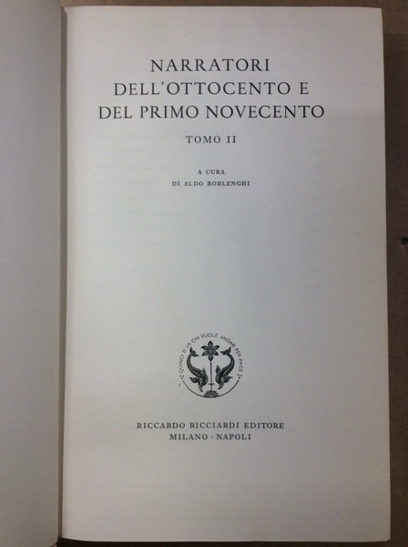 NARRATORI DELL'OTTOCENTO E DEL PRIMO NOVECENTO. Tomo II.