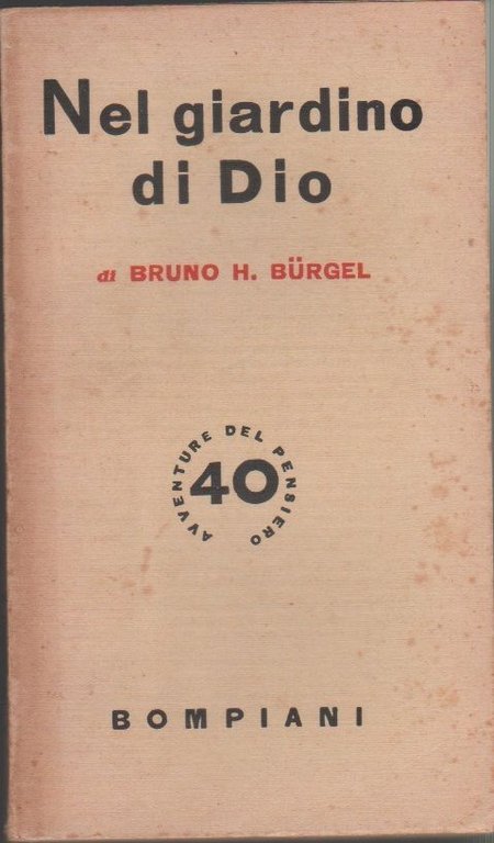 Nel giardino di Dio - Bruno H. Bürgel Bompiani Avventure del pensiero n. 40. Brossura - 12x20.50 cm - 273 ppFirma d'appartenenza all'anteporta; fioriture alla copertina e al taglio e allìinterno; piccole abrasioni al dorso; interno in ottimo stato.