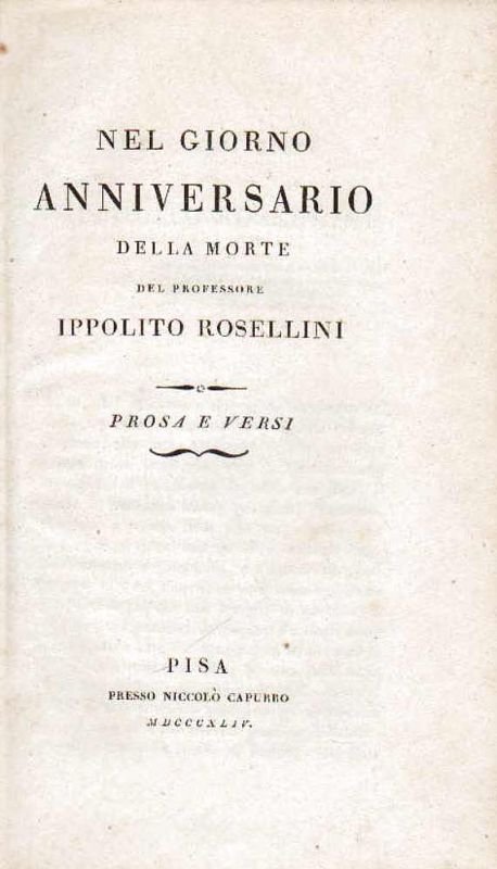 Nel giorno anniversario della morte del professore Ippolito Rosellini. Prosa e versi.