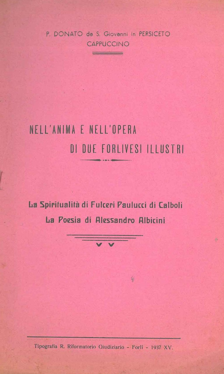 Nell'anima e nell'opera di due forlivesi illustri. La spiritualità di Fulceri Paulucci di Calboli. La poesia di Alessandro Albicini