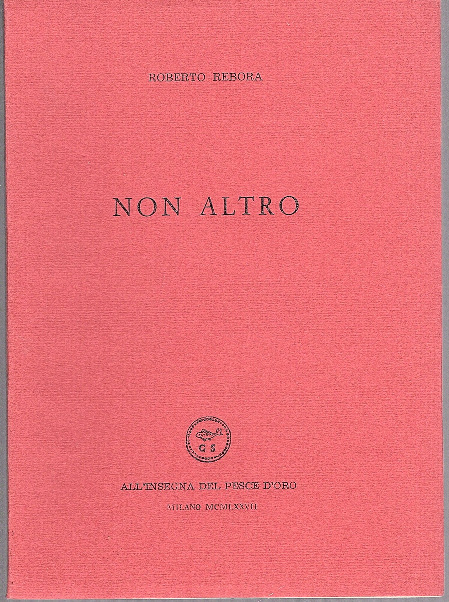 In-16° (17 x 12 cm), pp. 42 (5), brossura editoriale bordeaux a risvolti con titoli in nero, ugualmente al dorso. Marca editoriale. Etichetta libraria al piatto posteriore. Ottimo esemplare. Prima edizione della collana 'Quaderni di poesia contemporanea' a cura di Riccardo Tanturri copia numerata (721), tirata a 1000 esemplari.