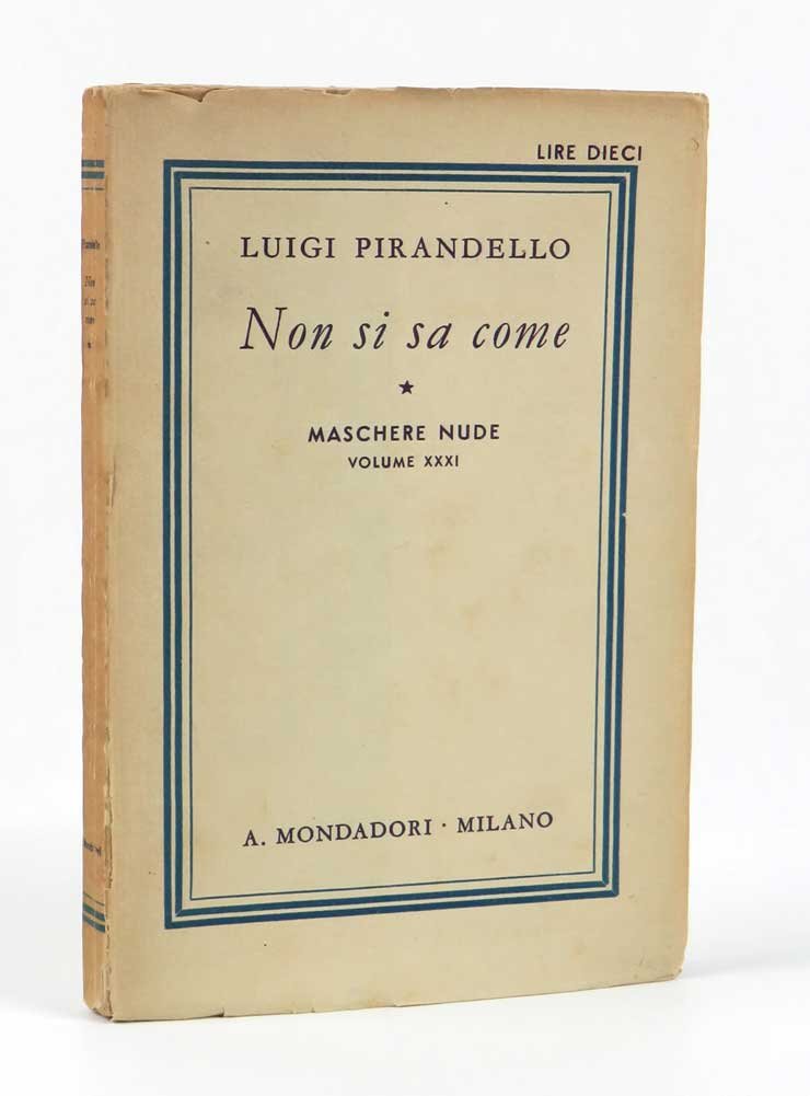 LIBRO Prima edizione. Più che buon esemplare nella brossura originale (dorso scurito e bordi delle pagine normalmente bruniti, con minimi segni del tempo perimetrali). Dramma composto nel 1934, anno del premio Nobel per la letteratura. Fu rappresentato per la prima volta in Italia nel 1935, anno della pubblicazione nel ben avviato contesto delle «Maschere nude», cominciate da Bemporad e rilevate e continuate da Mondadori.