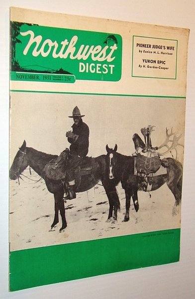 - Northwest Digest Magazine, November 1951 caribou hunt, Editorial - We Can Have Highways, Who the Loon Got its White Neck Band and Spots on its Back - And, Man Was Turned into a Lynx, Pioneer Judge's Wife - part 1, Along the Trapline, Two clear photos of the aftermath of a locomotive boiler, explosion in the railway yars of P.G.E. at Quesnel, B.C. in September 1951, The Ghost of Hunter Jack - Poem, Photo of a group of gold panners at Lowhee Placer mine with a, pan full of huge nuggets, Yukon Epic - a true tale of the northland, Nature Oddities, Dawson Creek Motorists First to Drive over John Hart Highway -, Ralph Thomsen and son Bob, Stan Carnell and Bob Greer - brief write-up with two photos, Four Million Acres of Untouched Grassland - review of "Grass, Beyond the Mountains" by Richard P. Hobson Jr. - with a small, photo of Hobson, Back cover ad for Finning's "Caterpillar" Diesel farm and, logging Tractors British Columbia Magazine Back Issues