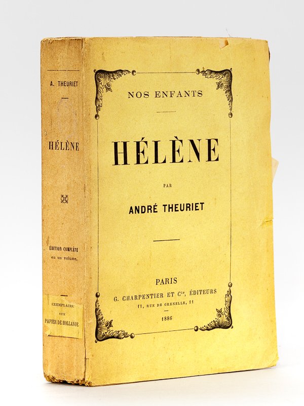 E.O., un des 25 exemplaires numérotés sur papier de hollande, 1 vol. in-12 br., G. Charpentier et Cie, Paris, 1886, 2 ff., 331 pp. Edition originale, exemplaire du tirage de tête, un des 25 sur hollande numéroté à grandes marges. On joint une carte autographe signée d'André Theuriet, datée de Bois Fleuri (Bourg La Reine), le 18 juin 1896 : "Cher Monsieur, Je n'entends plus parler de notre affaire. Si vous y donnez suite, veuillez m'envoyer conformément à nos conversations la somme de 500 francs qui était payable lors de la remise du texte. . ". Bon état (grandes marges lég. ternies). Vicaire, VII, 799