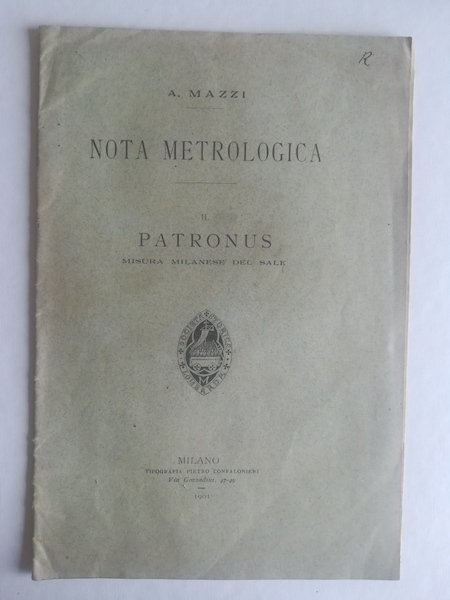 Nota metrologica. Il patronus misura milanese del sale