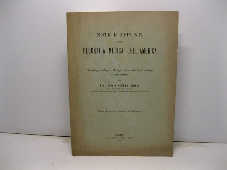 Note e appunti sulla geografia medica dell'America. I. Climatologia, Geologia e Idrologia medica dello Stato brasiliano di Minas-Geraes. Estratto dal periodico L'Idrologia e la Climatologia