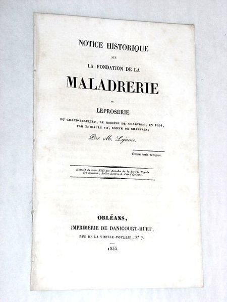 Notice historique sur la Fondation de la Maladrerie ou Léproserie du grand-beaulieu, au diocèse de Chartres, en 1054, par Thibault III, comte de Chartres.