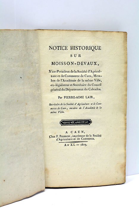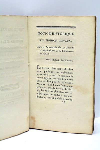 Notice Historique sur Moisson-Devaux, Vice-Président de la Société d'Agriculture et de Commerce de Caen, Membre de l'Académie de la même Ville, ex-législateur et Secrétaire du Conseil général du Département du Calvados.