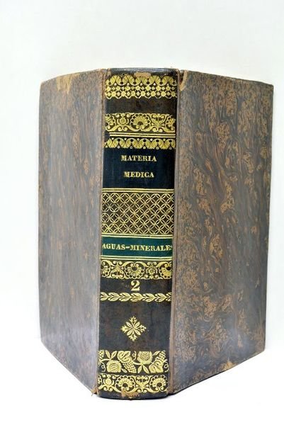 2 ouvrages en 1 volume in-8. 1). 1f. IV. 138pp. 2). 2ff. 556pp. (tome 2 seul). Plein veau, dos lisse orné (reliure de l'époque). Rousseurs éparses. Très bon exemplaire. 2 ouvrages de médecine reliés ensemble dans une jolie reliure romantique de l'époque. Eaux minérales. Médecine. España.