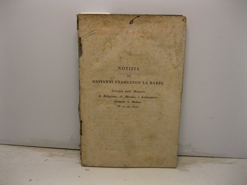 Notizia su Giovanni Francesco La Harpe estratta dalle Memorie di Religione, di Morale e Letteratura stampate in Modena