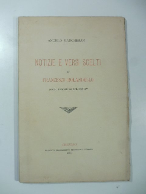 Notizie e versi scelti di Francesco Rolandello poeta trevigiano del sec. XV