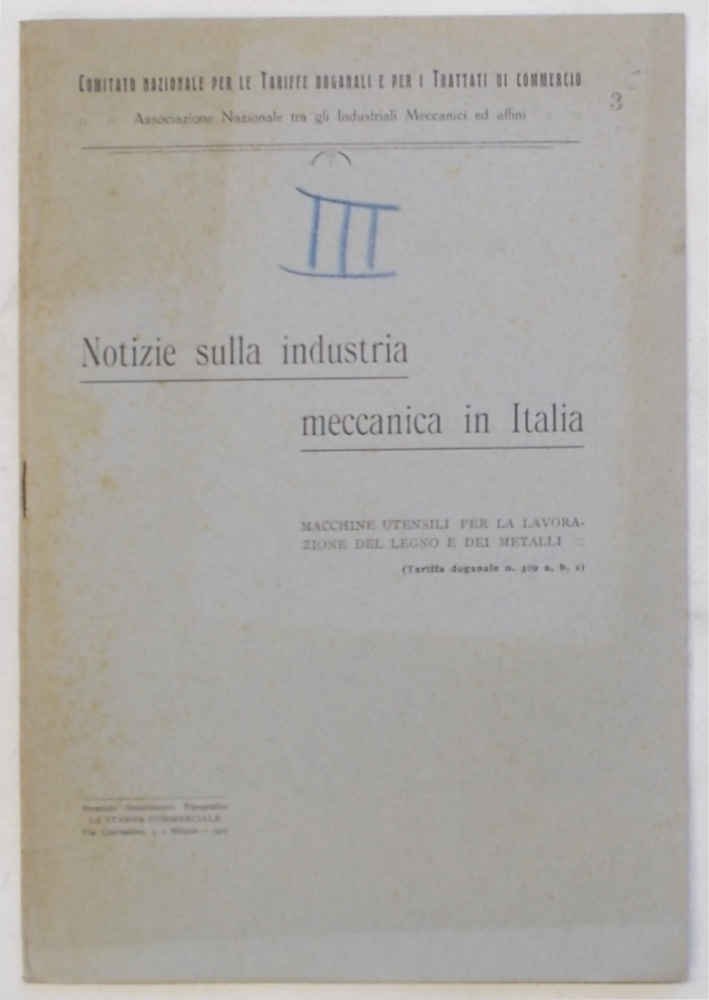 Notizie sulla industria meccanica in Italia. Macchine utensili per la lavorazione del legno e dei metalli. (Tariffa doganale n. 309 a, b, c)