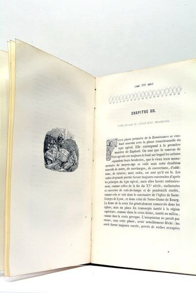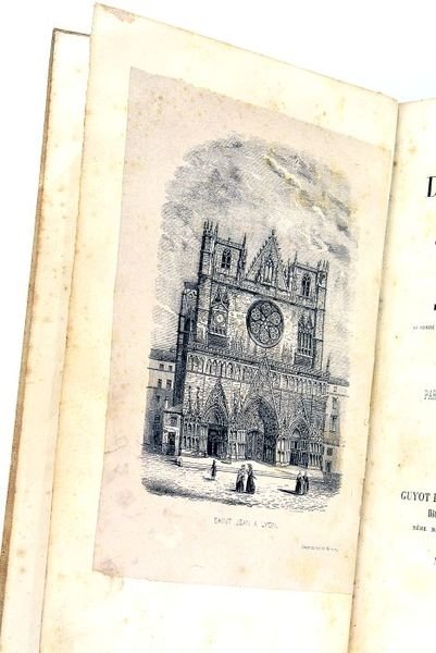 Frontispice + VI + 2 pages non chiffrées + XI + 424 pages (13x21cm). Reliure ancienne Cuir. Coins émoussés. Plats, mors et dos frottés. Coiffes arrachées. Filets dorés sur les plats. Décor romantique au dos. Rousseurs. Quelques salissures. Le papier des derniers feuillets ondule un peu. Joli Frontispice représentant la Cathédrale St Jean à Lyon. Architecture. Archéologie. Lyon. Belle Edition (Nombreuses Vignettes, Lettrines, Culs-de-lampe). Rare. Rhône-Alpes.