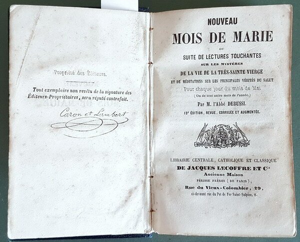 NOUVEAU MOIS DE MARIE ou Suite de lectures touchantes sur les mysteres de la Vie de la Trés-Sainte Vierge pou chaque jour du mois de Mai