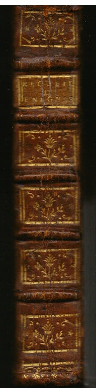 In-16° (168x94mm), pp. (1), XXI, (3), 323, (35), legatura p. pelle marmorizzata coeva con titolo e fregi in oro su tassello su dorso a nervi. Tagli marmoreggiati. Fregio tipografico al tit. Testatine e capilettera ornati. Antica firma di appartenenza nobiliare al verso della prima carta bianca e al titolo. Bellissimo esemplare. Seconda edizione, considerevolmente aumentata, di assai rara raccolta di enigmi, complessivamente 544; in fine, 'Clè des enigmes contenues dans ce recueil' e 'Table alphabetique des mots des enigmes contenues dans ce recueil'. L'opera, apparsa anonima, è sconosciuta al Barbier, ma è dovuta alla penna dell'avvocato e poligrafo lionese Gayot de Pitaval (1673-1743). L'edizione originale era apparsa nel 1717. Cfr. Cioranescu, XVIII, 30511.