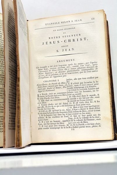 6 pages non chiffrées + 394 pages (15x23cm). Reliure ancienne Cuir. Coins émoussés. Salissures aux plats. Mors et dos frottés avec de petits trous de vers. Traduction d'Osterwald. Edition Stéréotype.