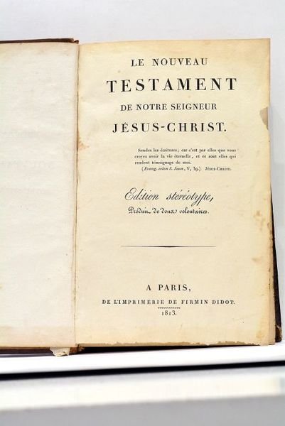 NOUVEAU TESTAMENT (Le) de Notre Seigneur Jésus-Christ. Edition Stéréotype, produit de doux volontaires.