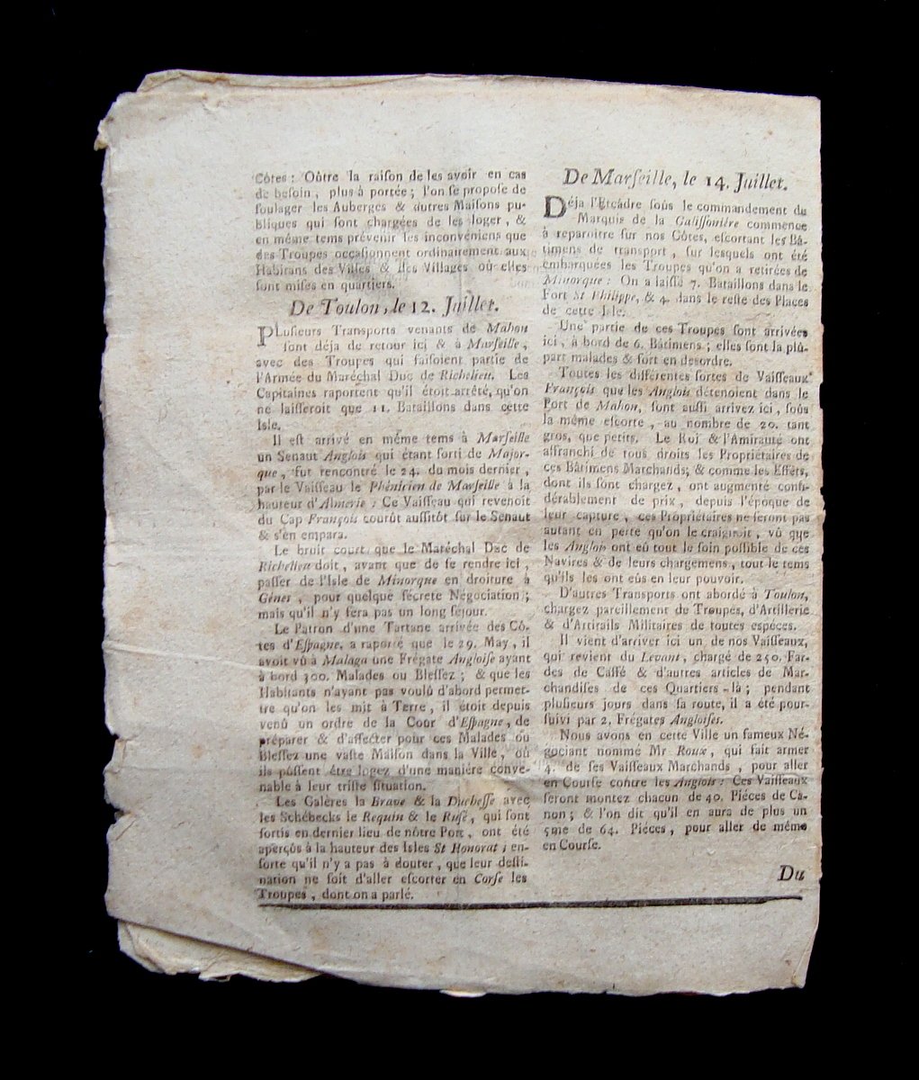 Nouvelles de Divers Entroits giornale francese N LIX 24 Luglio 1756