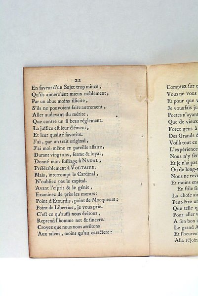 23 pages. (14,5x9 cm). Broché. Feuillets en partie déreliés. Bon exemplaire. Petit poème très rare. C'est une satire dirigée contre le littérateur auvergnat Antoine Danchet, dévoilant certaines des querelles du milieu littéraire de l'époque. Auvergne.