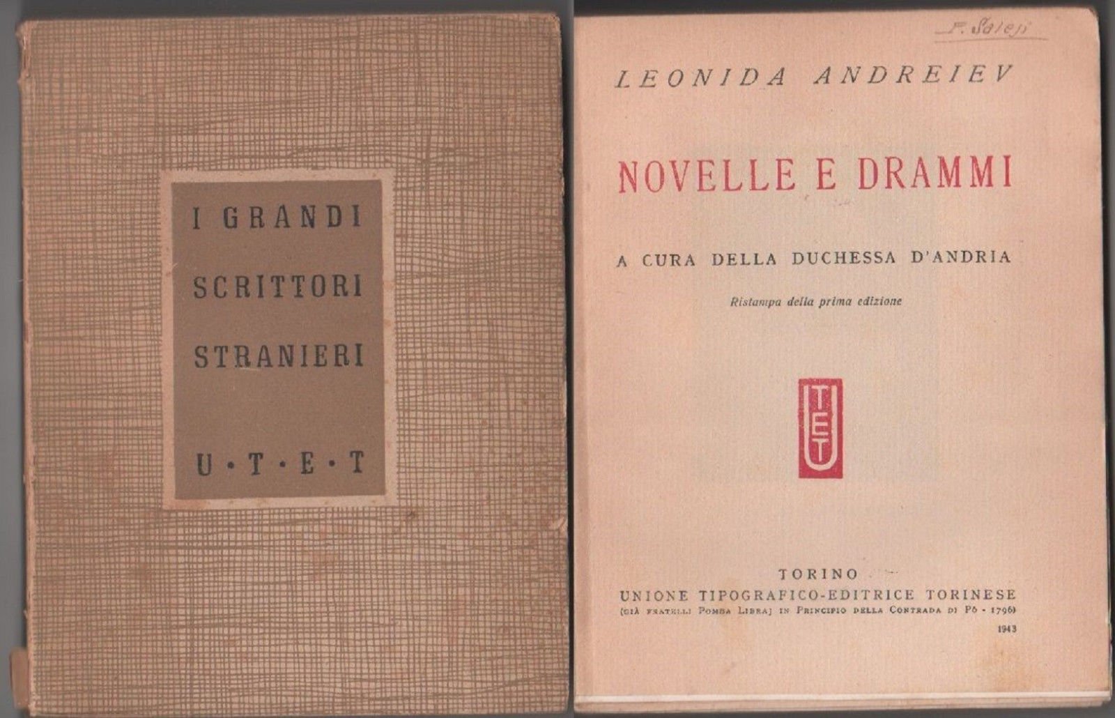 Novelle e drammi - Andreiev LeonidaA cura della duchessa d'Andria. UTET. 1943 Collana "I grandi scrittori stranieri" diretta da Arturo Farinelli dell'Accademia d'ItaliaBrossura - 14.2x18.5 cm - 335pp