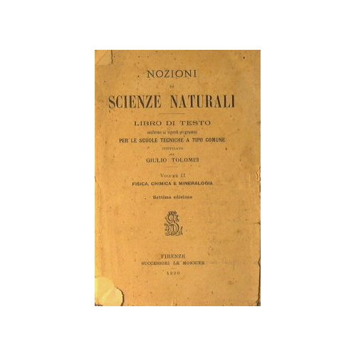 Vol. II: Fisica, chimica e mineralogia - Libro di testo conforme ai vigenti programmi per le scuole tecniche a tipo comune - Settima edizione - in 16° - pp.260 - Brossura editoriale - Strappi al dorso con allentamento della legatura