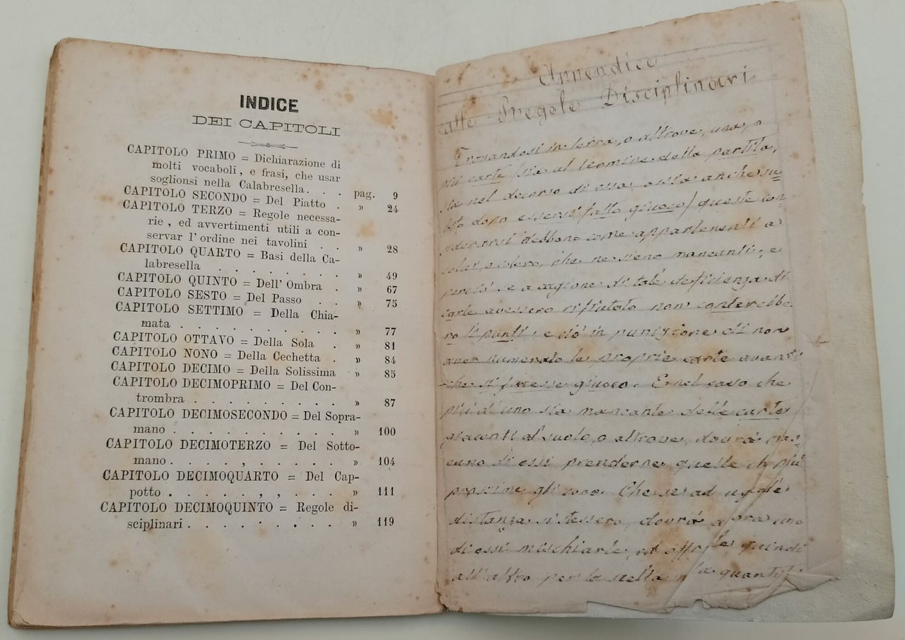 In 8', br. muta, pp. 133; aappendice delle regole disciplinari, manoscritto in fine. Forellini d'insetto al piatto ant., bruniture e segni d'uso alla cop., fioriture diffuse, in particolar modo al frontespizio, firma d'appartenenza allo stesso, segni del tempo, comunue buon es. ***Due to bureaucratic reasons, books dated over 70 years old cannot be immediately exported, please contact us before placing the order.***