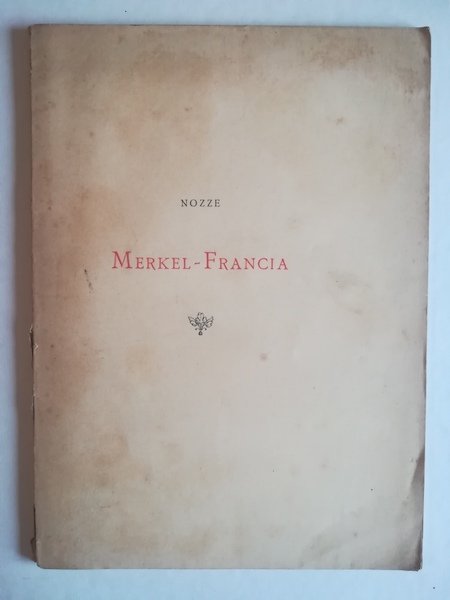 In 8 (cm 19 x 25,5), pp. 52. Omaggio manoscritto alla prima carta bianca. Fioriture sparse alle pagine. Brossura editoriale con lievi danni riparati al dorso. Pubblicazione per le nozze Carlo Merkel- Maria Francia curata da Carlo Cipolla con alcuni contributi storici: Le nozze di Nicolo' II d'Este con Verde della Scala (1362) con documenti finali e La nascita di Canfrancesco della Scala (1385). Seguono alcune poesie in traduzione italiana dal tedesco di Francesco Cipolla.