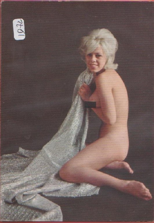 Nudo. Bionda con coperta grigia. Non viaggiata