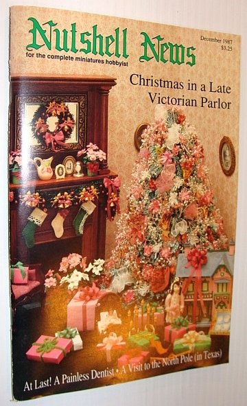 • Nutshell News Magazine - For the Complete Miniatures Hobbyist, December 1987 - Christmas in a Late Victoria Parlor! Gloria, Janssen-Jensen - Christmas all through her house!, Becky and Lee McGratty - All the World's a Stage!, Peggy Schuette and Santa's Workshop, Jayne Merchant and her collection of over 300 dolls, Ron Mummert's 99-room dollhouse!, Gail Wang's mini-dentist office, Susan Fisher has built more than 75 architecturally accurate, room reproductions, Betty Spice's Talent, Alice Olson - creating and collecting, Dee Jay Rinehart's animals, DIY Pennsylvania toleware pot for your country style room, Creating Panorama Christmas Ornaments, Joann's Christmas in a late Victorian Parlor, A new method for applying roof Shingles Crafts and Hobbies, Magazine Back Issues