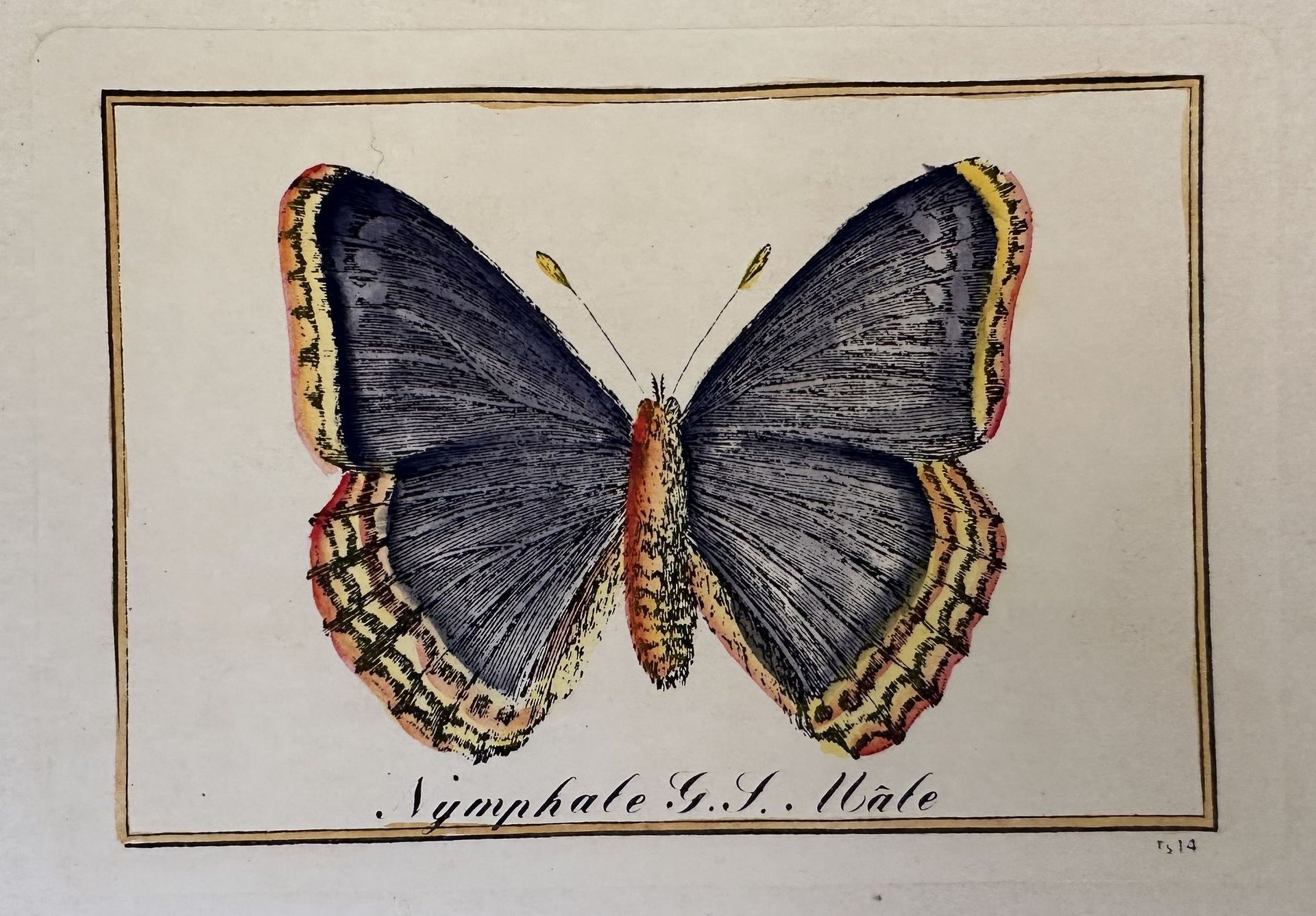 Litografia di fine ottocento colorata a mano che mostra una specie di farfalla. Nota manoscritta in lingua tedesca. In ottime condizioni. TECNICA: Litografia colorata a mano DIMENSIONI FOGLIO: cm 23,5x17 DIMENSIONI INCISIONE: cm 13x9 EPOCA: fine ottocentoLithography of late 19th century featuring a species of butterfly. <BR>Handwritten text in german language.<BR>In very good condition TECHNIQUE: lithography painted by hand PAGE SIZE: cm 23,5x17 PRINT'S SIZE: cm 13x9 PERIOD: late 19th century