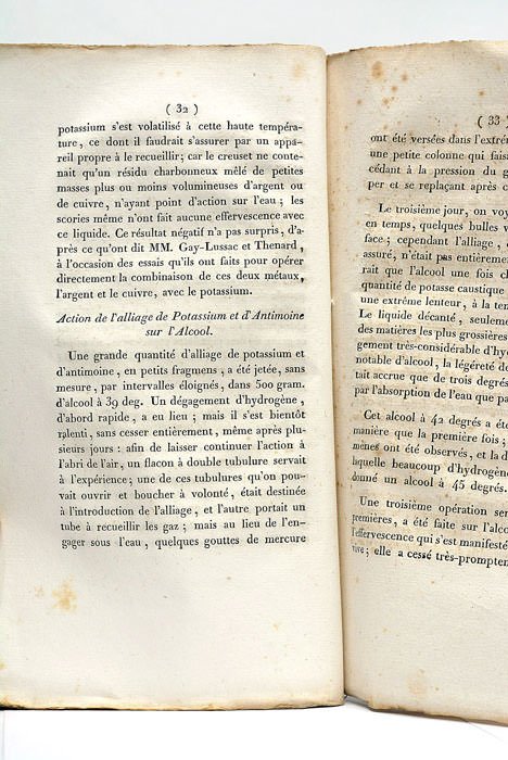 Observations Physico-chimiques sur les alliages du Potassium et du Sodium avec d'autres métaux; propriétés nouvelles de ces alliages servant à expliquer le phénomène de l'inflammation spontanée du poryphore, et la cause des mouvemens du camphre sur l'eau. Antimoine Arsenical dans le commerce.
